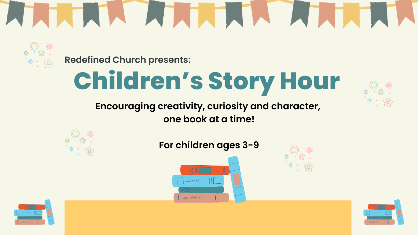 All stories will be in English. Reading selections from standard chlidren’s stories and have a basic moral theme. This special story hour is one of the ways that Redefined Church can give back to the community. You can email us with any questions at info@redefinedchurch.be.